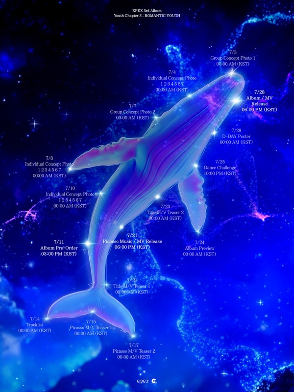 Through the previously released scheduler image of the third full-length album, the pre-release schedule for the track ‘Picasso’ was unveiled. EPEX will pre-release the track ‘Picasso’ and its music video from the third full album through various online music sites on the 21st.