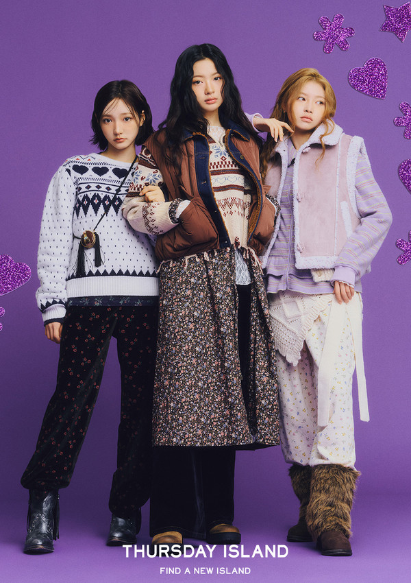 A brand representative said, “This winter campaign introduces a new pictorial format that combines KiiiKiii’s Gen Z generation image with the unique sensibility of Thursday Island, allowing the experience of fantasy in everyday life,” adding, “Sticker and collage, recombined visuals reflect the creative lifestyle of consumers while capturing the warm and joyful moments of the winter season in a more kitschy and diverse mood.”